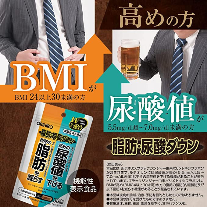Orihiro 黑薑瘦肚減脂 & 降尿酸 黑姜木犀草素膠囊 30日